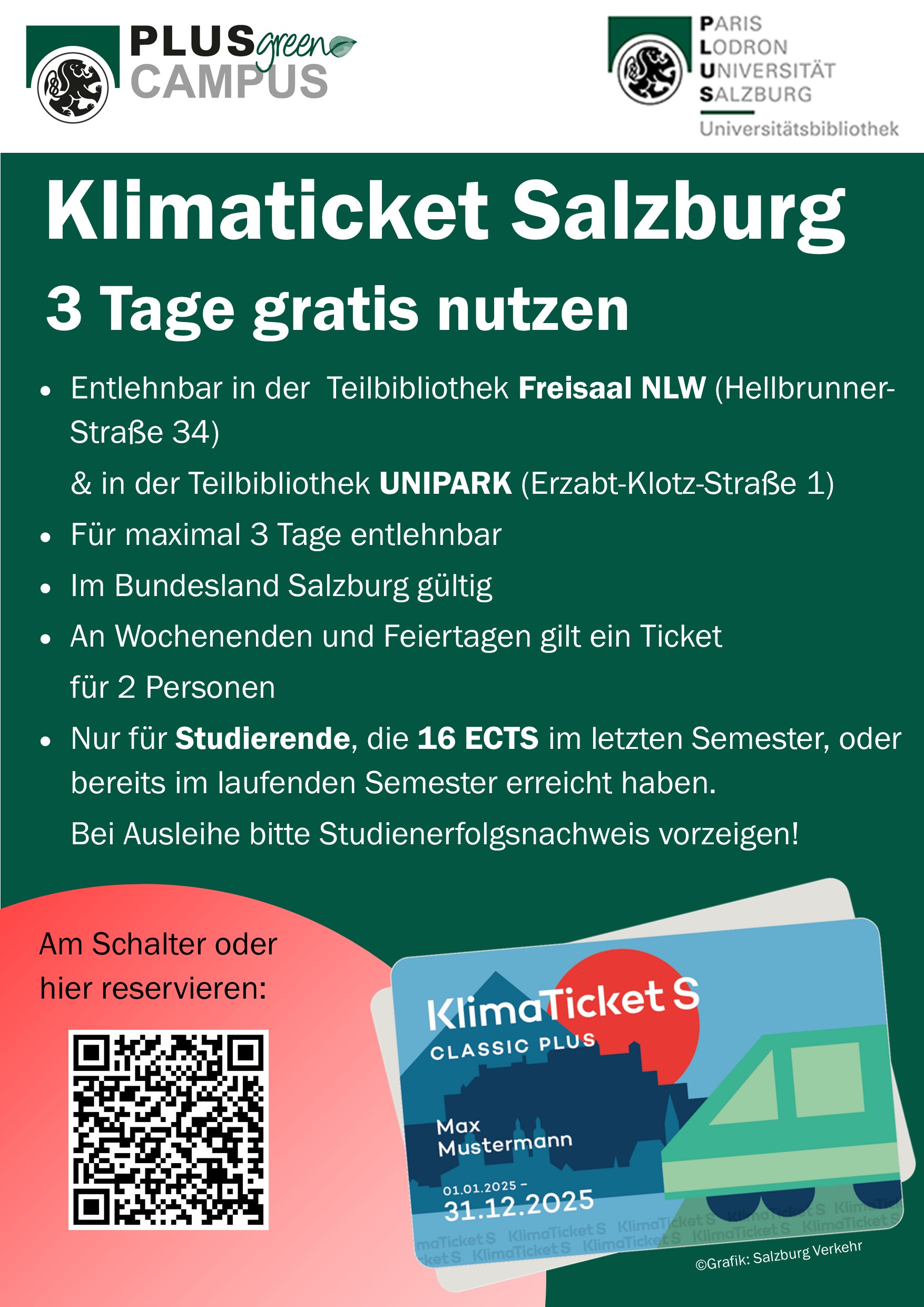 Wie lassen sich Mobilität und Nachhaltigkeit miteinander verbinden? Im Rahmen der PLUS Green Campus Initiative der Paris Lodron Universität unterstützt die Universität eine nachhaltige Mobilität ihrer Angehörigen auf dem Weg zum und vom Arbeits- und Studienplatz. Ziel ist es die Verwendung nachhaltiger Verkehrsmittel, wie zum Bespiel das Fahrrad oder den öffentlichen Verkehr, zu fördern.