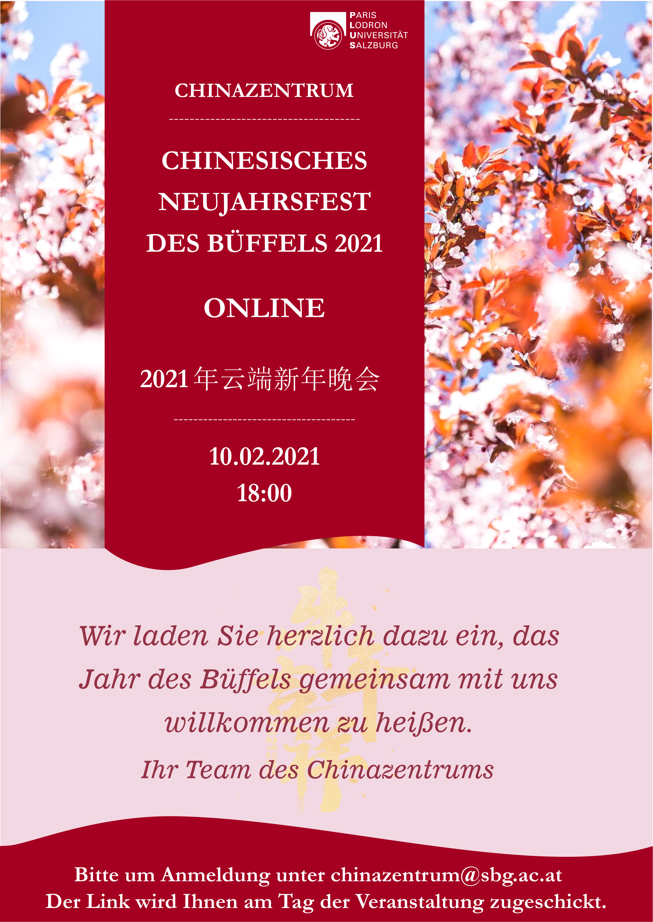 Wir haben das Neue Jahr mit Grußworten unseres Herrn Rektor Prof. Hendrik Lehnert, des Chinesischen Botschafters S.E. Herrn LI Xiaosi, mit einigen berühmten China-Experten wie Herrn Prof. Gerd Kaminski, Herrn Prof. Wolfgang Kubin, Herrn Prof. Richard Trappl, mit Musik und weiteren Beiträgen begrüßt. Der Büffel ist bekannt für seinen Fleiß, seine Zuverlässigkeit, Kraft und Entschlossenheit. In dieser Haltung möchten wir in das Chinesische Neue Jahr gehen und uns den Herausforderungen des neuen Büffel-Jahres stellen.