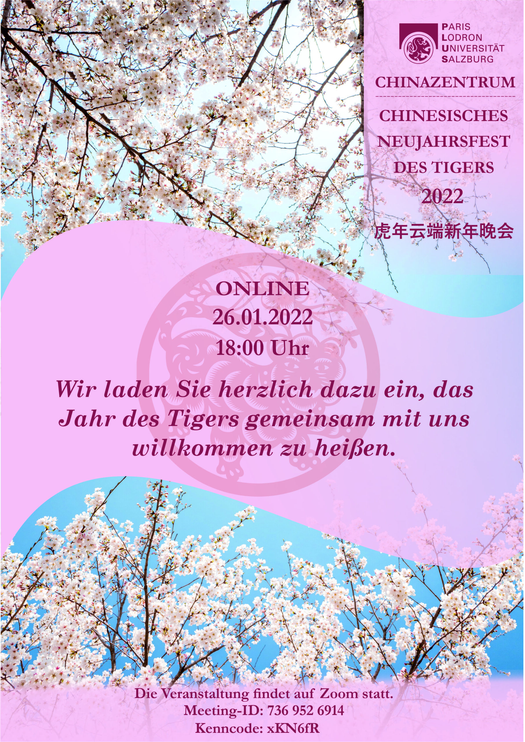 Ein Neues Jahr, eine Neue Hoffnung! Zum Chinesischen Neuen Jahr des Tigers wünschen wir Ihnen alles Gute, viel Gesundheit und viel Zuversicht! Wir haben das Neue Jahr mit Grußworten des Chinesischen Botschafters S.E. Herrn LI Xiaosi und Herrn Prof. Richard Trappl (Direktor, Konfuzius-Institut Wien), einem Vortrag von Herrn Prof. Roderich Ptak (Sinologie, Ludwig-Maximilians-Universität München), Beiträgen von Herrn Prof. Wolf-Dieter Rausch (Präsident, Eurasia-Pacific-Uninet EPU), Herrn Prof. Karl-Heinz Pohl (Sinologie, Universität Trier), mit Musik und weiteren Beiträgen begrüßt. Der Tiger ist bekannt für seinen Mut, seine Lebhaftigkeit, Kraft und Optimismus. In dieser Haltung möchten wir in das Chinesische Neue Jahr gehen und uns den Herausforderungen des neuen Tiger-Jahres stellen.