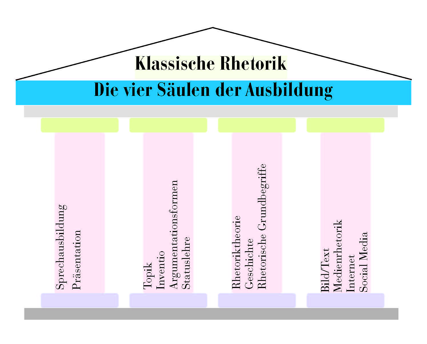 Die einzelnen Module bauen so aufeinander auf, dass Sie bis zum Abschluss der Studienergänzung Rhetoricum (24 ECTS) alle vier Säulen der Ausbildung (Performanz, Argumentation, rhetorisches System, Medientheorie) beherrschen; im Rahmen des Rhetoricum maius (36 ECTS) können Sie dann gemäß Ihrer persönlichen Interessen das Studium bestimmter Säulen vertiefen. Diesen Studienschwerpunkt schließen Sie mit einer schriftlichen Hausarbeit zu einer rhetorischen Fragestellung ab
