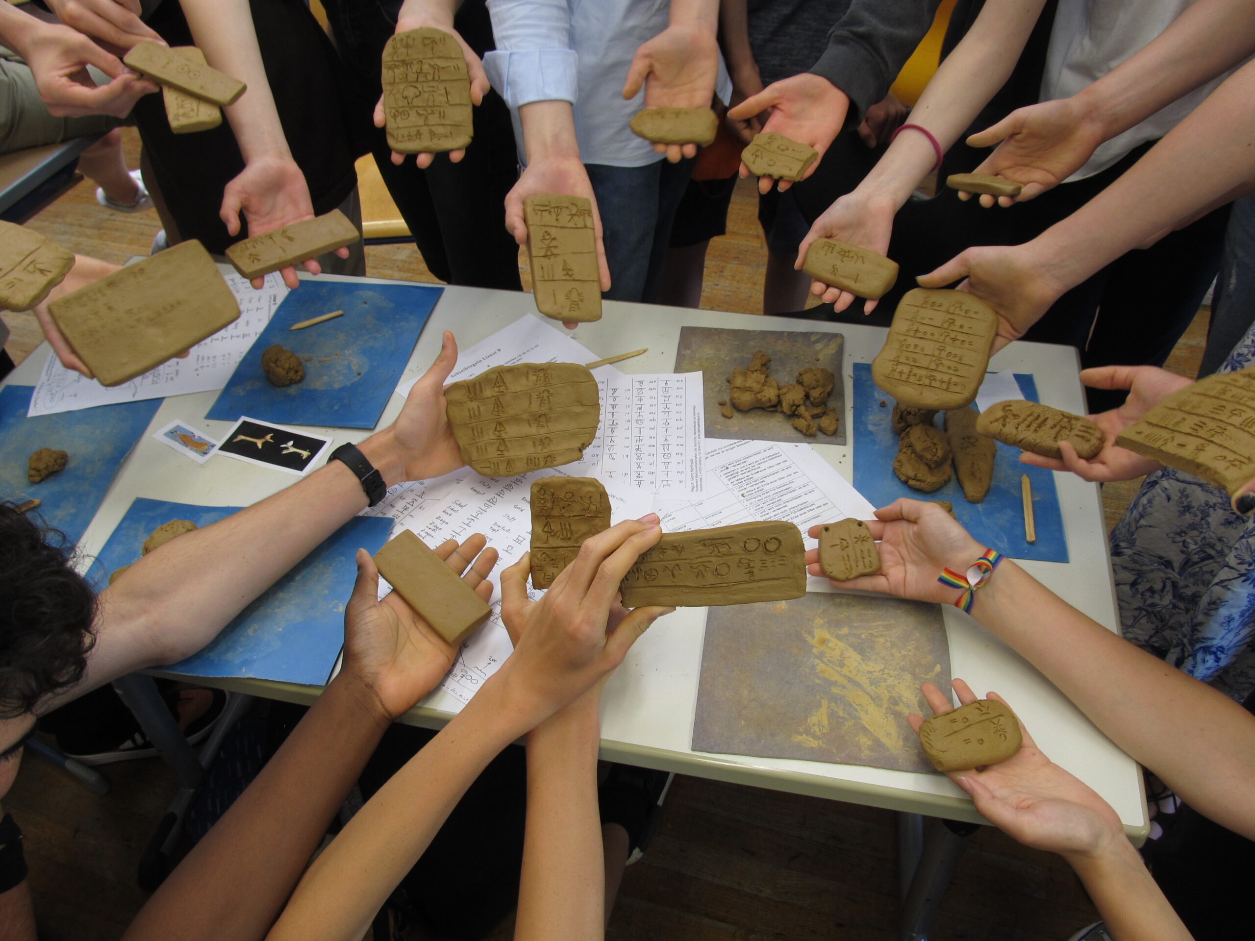 Bei diesem Projekt kann ich sehr flexibel sein. Teilweise geben die Jugendlichen mit ihren Fragen selbst eine Richtung vor; gerne können wir aber auch einen bestimmten Schwerpunkt vereinbaren (z.B. Schrift, Sprache, „Geheimschrift“, Entzifferung, die Schreiber, die Menschen in den Texten, die Verwaltung, die Kultur, die Schicksale der Menschen, die uns in diesen Texten entgegentreten, u.v.m.) und vor allem im zweiten Teil bei der Simulation einer mykenischen Verwaltung zur Geltung bringen.