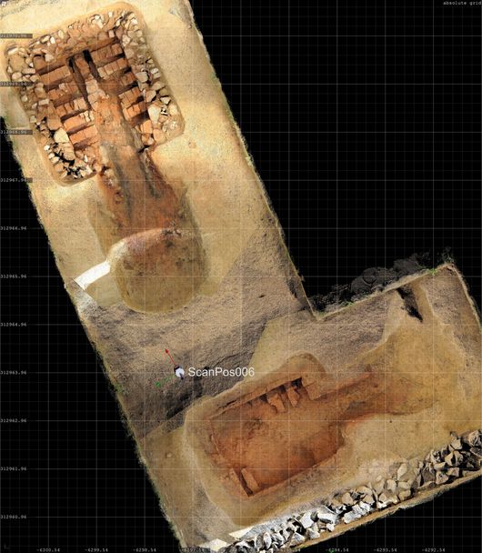Abb.: Zwei römische Ziegelbrennöfen, 3D-Scan Geometer Fally (Landesarchäologie / Salzburg Museum).
