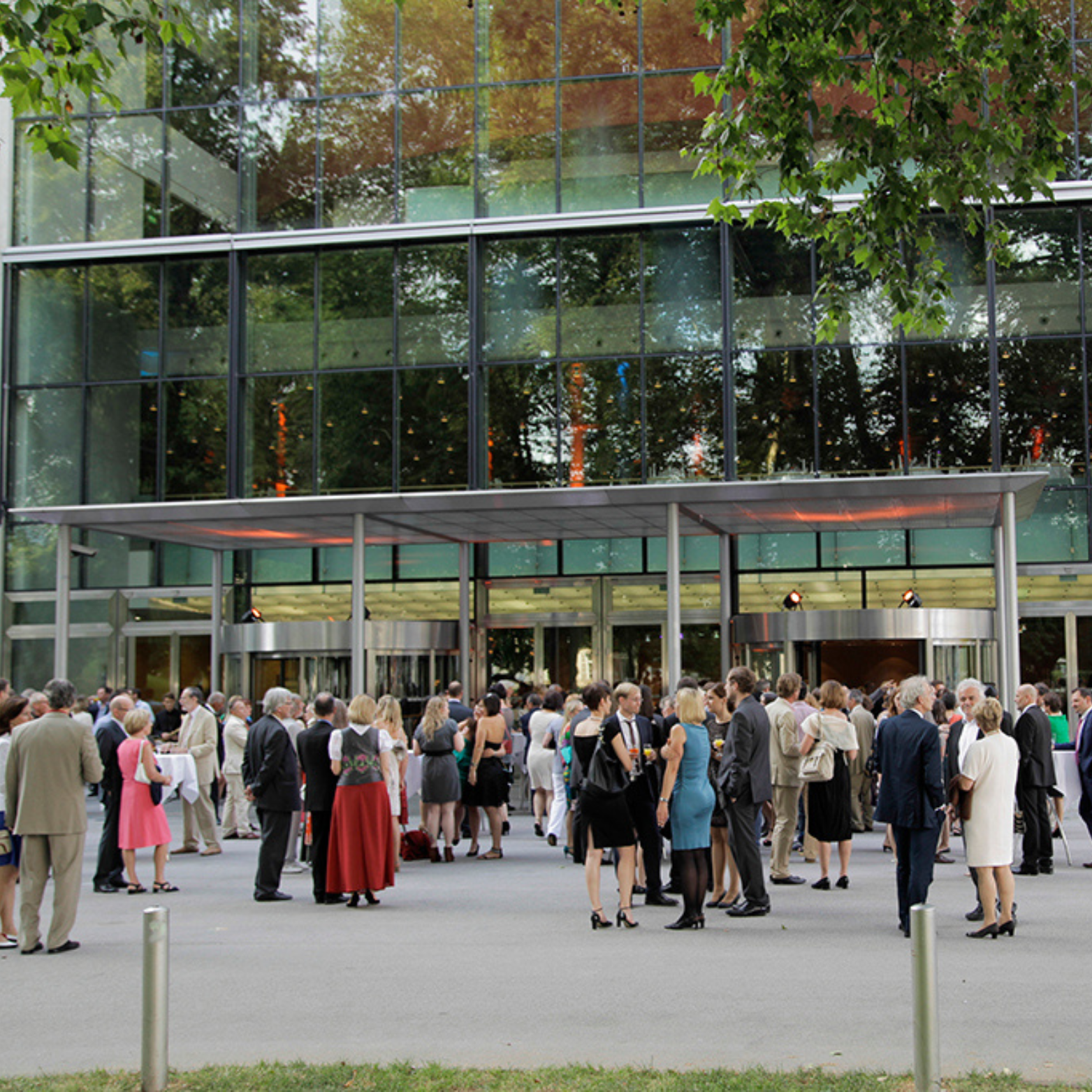 Wilhelm Holzbauer hat das repräsentative Gebäude der „Nawi“ in Freisaal entworfen. Zum 20. Jubiläum der Eröffnung veranstaltete der Alumni Club dort sein jährliches Fest, das fünfte seit Gründung des AbsolventInnen-Netzwerkes. Alumni-Präsident Dr. Arno Gasteiger und Rektor Heinrich Schmidinger begrüßten die Gäste, unter ihnen auch Bürgermeister Heinz Schaden, Landeshauptmann-Stv. Wilfried Haslauer und SPÖ-Clubobmann David Brenner, alle Absolventen der Universität Salzburg. Für die musikalische Unterhaltung bis lange nach Mitternacht sorgten Bea de la Vega mit Band und DJ Erik.
