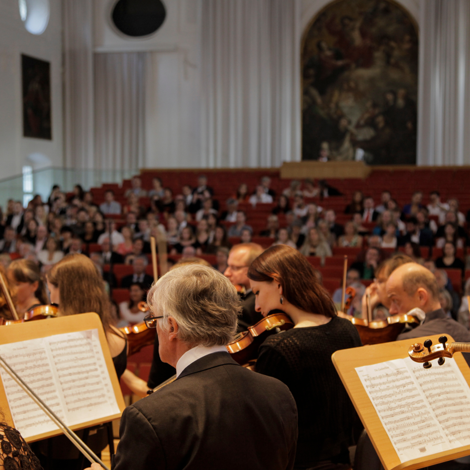 Absolvent*innen und Studierende, Mitarbeiter*innen und Emeriti: Die akademischen Generationen trafen sich beim 13. Alumni Fest. Neben Führungen in der Universitätsbibliothek und der Universitätskirche war Gershwins „Rhapsody in Blue“ das Programmhighlight. Das Universitätsorchester (Dirigent: Martin Fuchsberger, Solist: Matej Dzido) begeisterte die Gäste in der vollbesetzten Großen Aula.