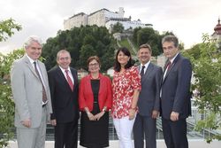 Rektor Heinrich Schmidinger, Bürgermeister Heinz Schaden, Vizerektorin Sylvia Hahn, Landeshauptfrau Gabi Burgstaller, Raiffeisen-Generaldirektor Günther Reibersdorfer, Vizerektor Rudolf Feik