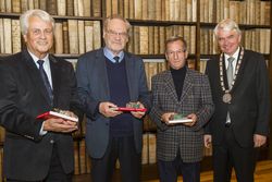 Beim Jubiläumsempfang 2016 gab es erstmals auch goldene Promotionen zu feiern: Univ.-Prof. Dr. Karlheinz Rossbacher, Prof. Dr. Heinz Rothbucher und Dr. Adolf Illichmann promovierten vor 50 Jahren in der Bibliotheksaula (zum Vergrößern anklicken).