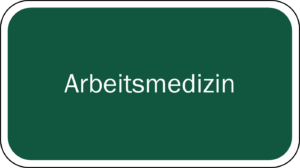 Viereck mit weißem Schriftzug auf uni-grünem Hintergrund mit der Beschriftung Arbeitsmedizin darum ein weißer Rahmen mit schwarzem linierten Rand und abgerundeten EckenBei der Arbeitsmedizin handelt es sich um eine präventive Disziplin im Rahmen des Arbeitnehmer*innenschutzes. Sie nimmt Einfluss auf die Gestaltung der Arbeitsplätze und der Arbeitsvorgänge und hat das Ziel Gesundheitsbelastungen zu vermeiden.