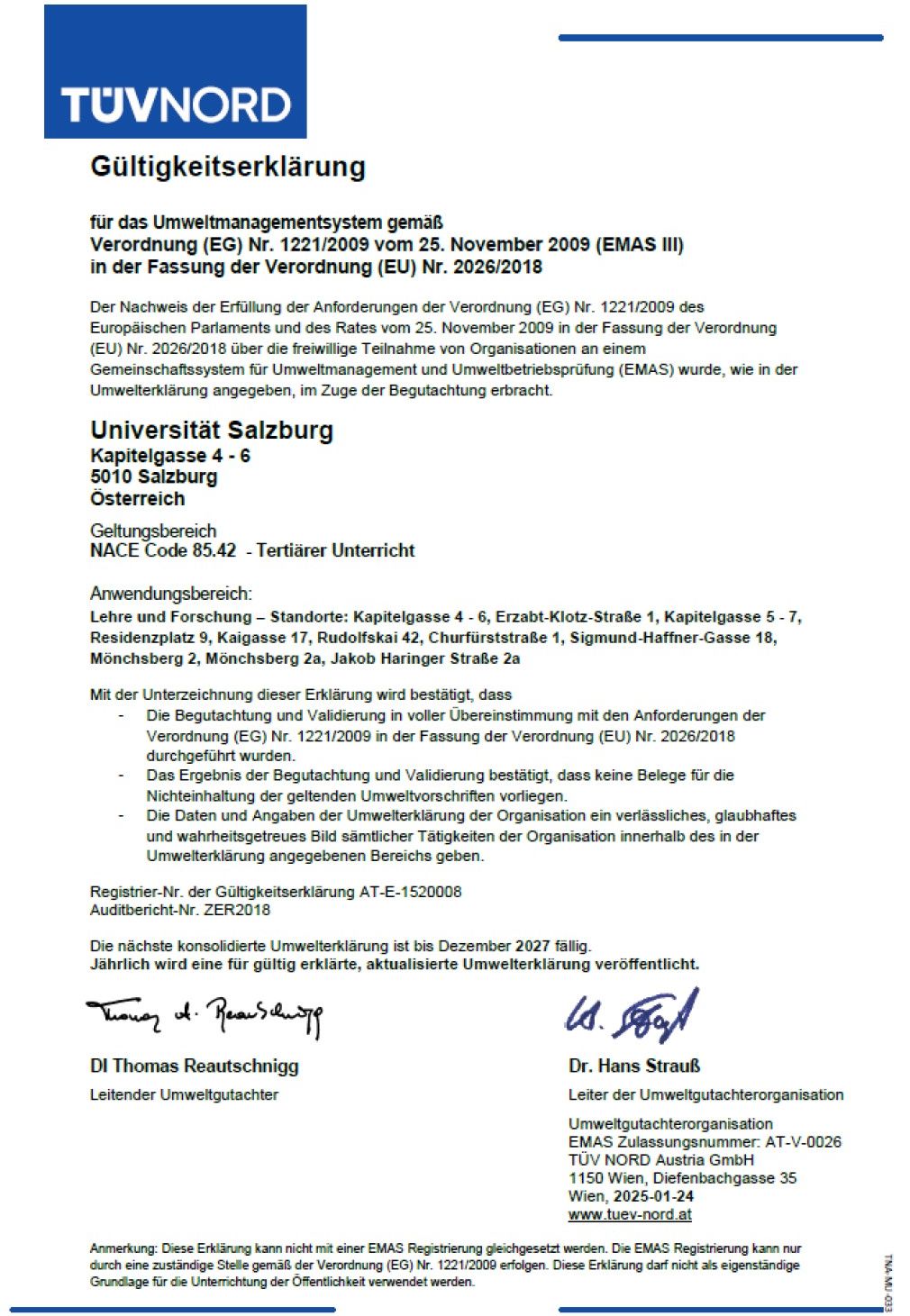 HomeArbeitssicherheit, Arbeitsmedizin und UmweltmanagementUmweltmanagementEMAS/ISO 14001Gültigkeitserklärung