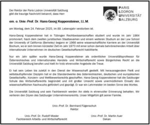 em.o.Univ.Prof. Dr. Hans-Georg Koppensteiner LL.M. (Berkeley, California) †