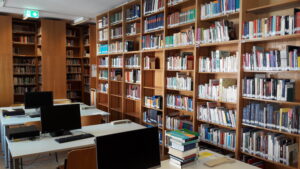 Die Bestände für Bibelwissenschaft befinden sich im 1. Stock des Studiengebäudes, die Bestände für Kirchengeschichte im 2. Stock.