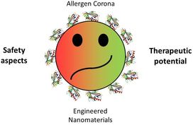 Nanomaterials spontaneously bind proteins including allergens. Orientation and selectivity of bound substances represents an intensely investigated field in research on bio-nano interactions. Interactions of allergens with nanomaterials may alter the structure of allergenic epitopes and thus the allergic behavior of bound allergens. This may have positive and negative biological consequences, both are of interest to us.