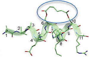 Side-Chain Cyclization Based on Serine Residues: Synthesis, Structure and Activity of a Novel Cyclic Analogue of the Parathyroid Hormone Fragment 1-11, A. Caporale, M. Sturlese, L. Gesiot, F. Zanta, A. Wittelsberger, C. Cabrele, (2010) J. Med. Chem. 53, 8072-8079.