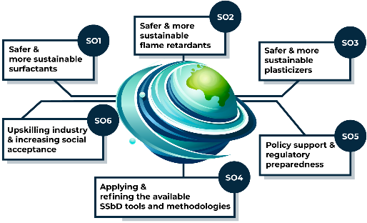 – Development of safer and more sustainable alternatives through SSbD assessments in a tiered approach.