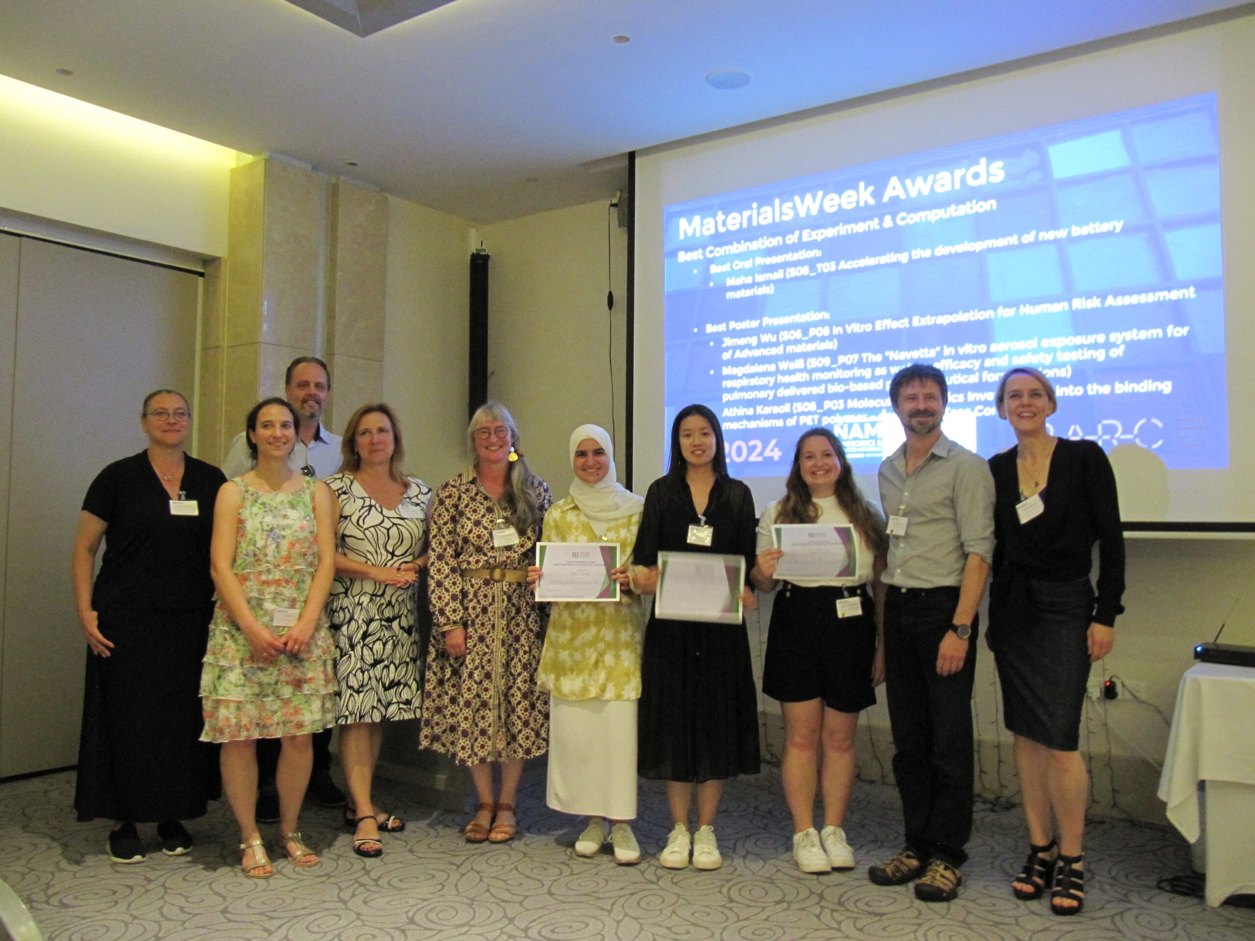 Research associate Magdalena Weiß (3rd from right side, with the Award Committee and other awardees) wins the „Poster Award for Bridging Experimental Assessment to Computational Modeling“ at the MaterialsWeek 2024 in Limassol, Cyprus: