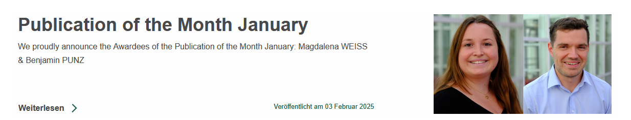 „Publication of the Month-Award“ April 2025 for Ben Punz et al. – more here: