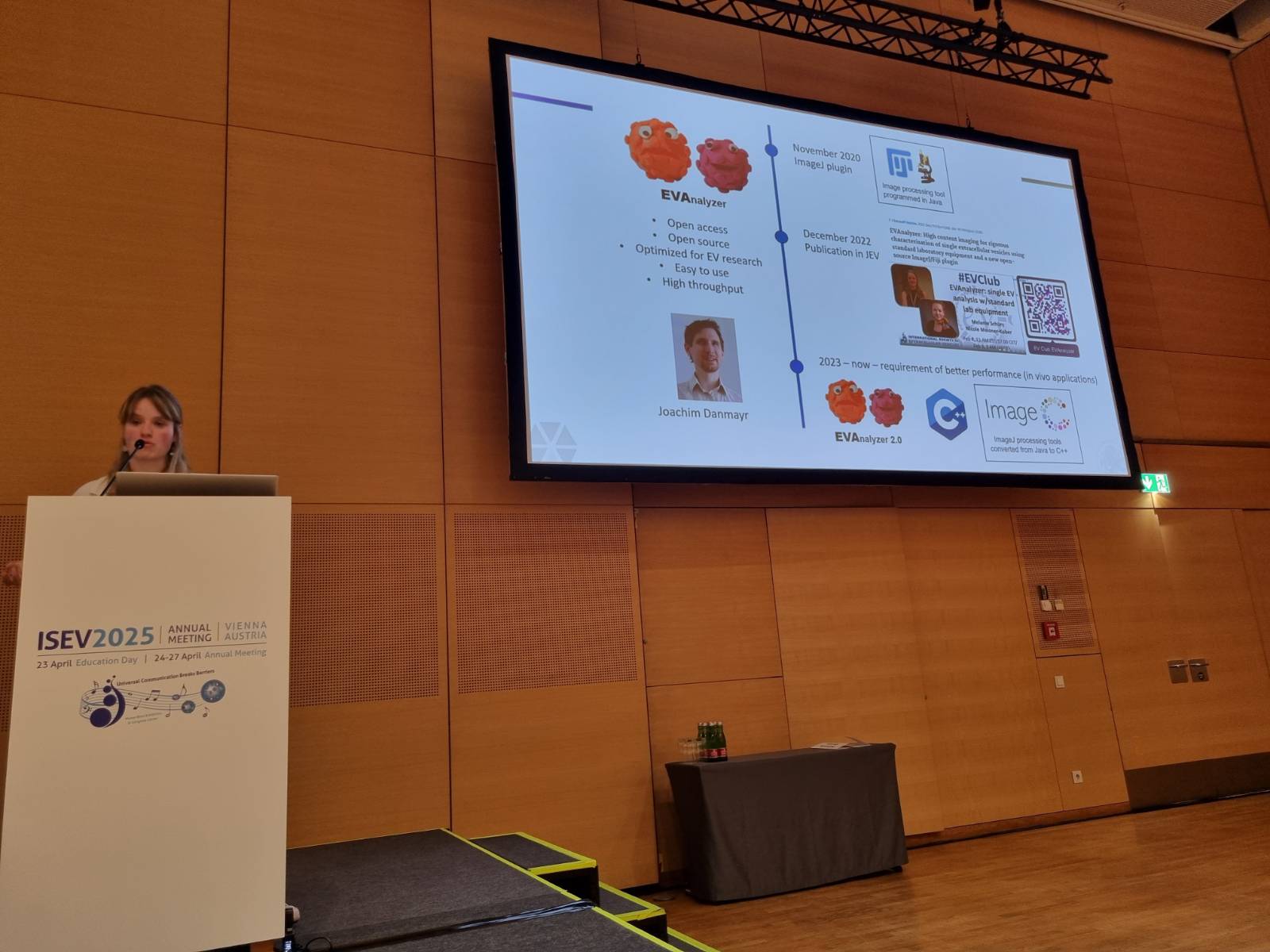 From the 23rd to the 27th of April 2025, the Internetional Society for Extracellular Vesicles Annual Meeting was held in Vienna where some members of the Meisner-Kober took part and also had the oppotunity to have a talk or present a poster.