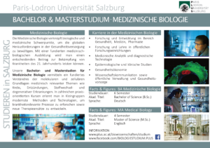 Die Biologie gilt als Leitwissenschaft des 21. Jahrhunderts, die zahlreiche Gesellschaftsbereiche maßgeblich beeinflusst. Die Medizinische Biologie erforscht dabei die biologischen Grundlagen, die für Gesundheit und Krankheit des Menschen wesentlich sind. Sie verbindet alle Inhalte der vielfältigen biowissenschaftlichen Fachdisziplinen und ermöglicht daher ein facettenreiches, biologisches Verständnis für Themen, die für die Medizin wesentlich sind. Die Studieninhalte reichen vom kleinteiligen Aufbau der Zelle über Organe und Organsysteme bis hin zur Biologie von komplexen zwischenmenschlichen Interaktionen. Studierende erhalten neben einer fundierten wissenschaftlichen und experimentell-analytischen Ausbildung in biomedizinisch relevanten Fächern der Biologie auch grundlegendes Fachwissen aus den für die praktische Umsetzung von aktuellen Forschungsthemen wichtigen Disziplinen Mathematik, Chemie und Physik.