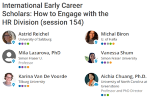 In the PDW “International Early Career Scholars: How to Engage with the HR Division” organized by Michal Biron (Israel), young international scholars are introduced to the network of HR Ambassadors. Astrid Reichel serves as an ambassador for Austria.