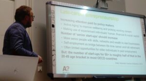 Ewald Kibler ( Aalto University) presented “ Age, Aging and Entrepreneurship” in the research seminar on November 22, 2022 onsite in room HS 212. He gave an overview of his ongoing research on late-career entrepreneurs including the effects of transition into self-employment for late-career entrepreneurs, consequences of entrepreneurship on health, well-being and income and how it relates to age, different types of entrepreneurial activities and the issue of age discrimination.