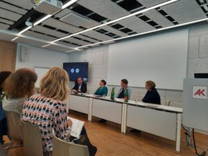 - On September 7th, 2022, in the beautiful ambience of the lecture hall on the 6th floor of the Vienna Chamber of Labour, the presentation of selected scientific results and a high-level discussion on social partnership with Silvia Hruska-Frank (Director AK Vienna), Andreas Mörk (Managing Director Bundesparte Industrie, WKO), Eva Scherz (Collective Agreement Negotiator, GPA) took place.
