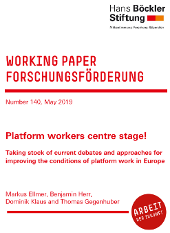Markus Ellmer hat gemeinsam mit Dominik Klaus, Benjamin Herr (beide Universität Wien) und Thomas Gegenhuber (Leuphana Universität Lüneburg) für die Hans-Böckler-Stiftung aktuelle Debatten und Ansätze in einer Literaturstudie zusammengefasst, welche zum Ziel haben, die Bedingungen von PlattformarbeiterInnen in Europa zu verbessern.