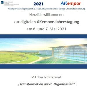 Die Jahrestagung des Arbeitskreises Empirische Personal- und Organisationsforschung (AKempor) wurde von 2020 auf 2021 verschoben und fand von 6. bis 7. Mai 2021 an der Europa-Universität Flensburg im virtuellen webex-Raum zum Thema „Transformation durch Organisation“ statt. Spannende Vorträge von Personal- und Organisationsforschenden rund um den Globus bestimmten das Programm. Astrid Reichel, Christina Fuchs und Isabella Scheibmayr haben dort die HRM group mit zwei Beiträgen vertreten.