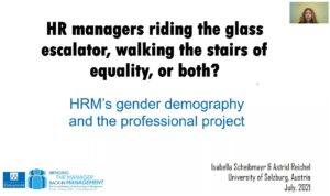 Astrid Reichel präsentierte ein gemeinsam mit Isabella Scheibmayr verfasstes Working Paper „HR managers riding the glass escalators, walking the stairs of equality, or both?” in Session #1480 Diversity and Gender Inequity (gesponsert von der HR Division).