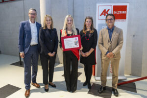 Reinhard Büger, Dominik Engel (Geschäftsführer der FH Salzburg), Cornelia Schmidjell (Direktorin der AK Salzburg)