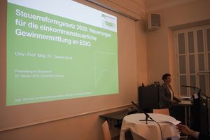 Univ.-Prof.in Mag.a Dr.in Sabine Urnik widmete sich den einkommensteuerlichen Änderungen durch das Steuerreformgesetz 2020 und analysierte dabei die neu eingeführte Pauschalierungsmöglichkeit gem § 17 Abs 3a EStG im Detail.