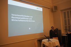 Circa fünfzig Interessierte vorwiegend aus der Steuerberatungs- und Wirtschaftsprüfungspraxis hörten zunächst einen Vortrag über das BGH Urteil vom 26.01.2017, IX ZR 285/14 von Ass.-Prof.in Mag.a Dr.in Eva Rohn, LLM.oec.: Mit diesem Urteil verschärfte der BGH in Deutschland die Haftung für Steuerberater bei Insolvenzen; aufgrund der Vergleichbarkeit der haftungsbegründenden Rechtsgrundlagen sind die Rahmenbedingungen und Leitsätze des Urteils, die im Vortrag skizziert wurden, auch für den österreichischen Berufsstand von großem Interesse.