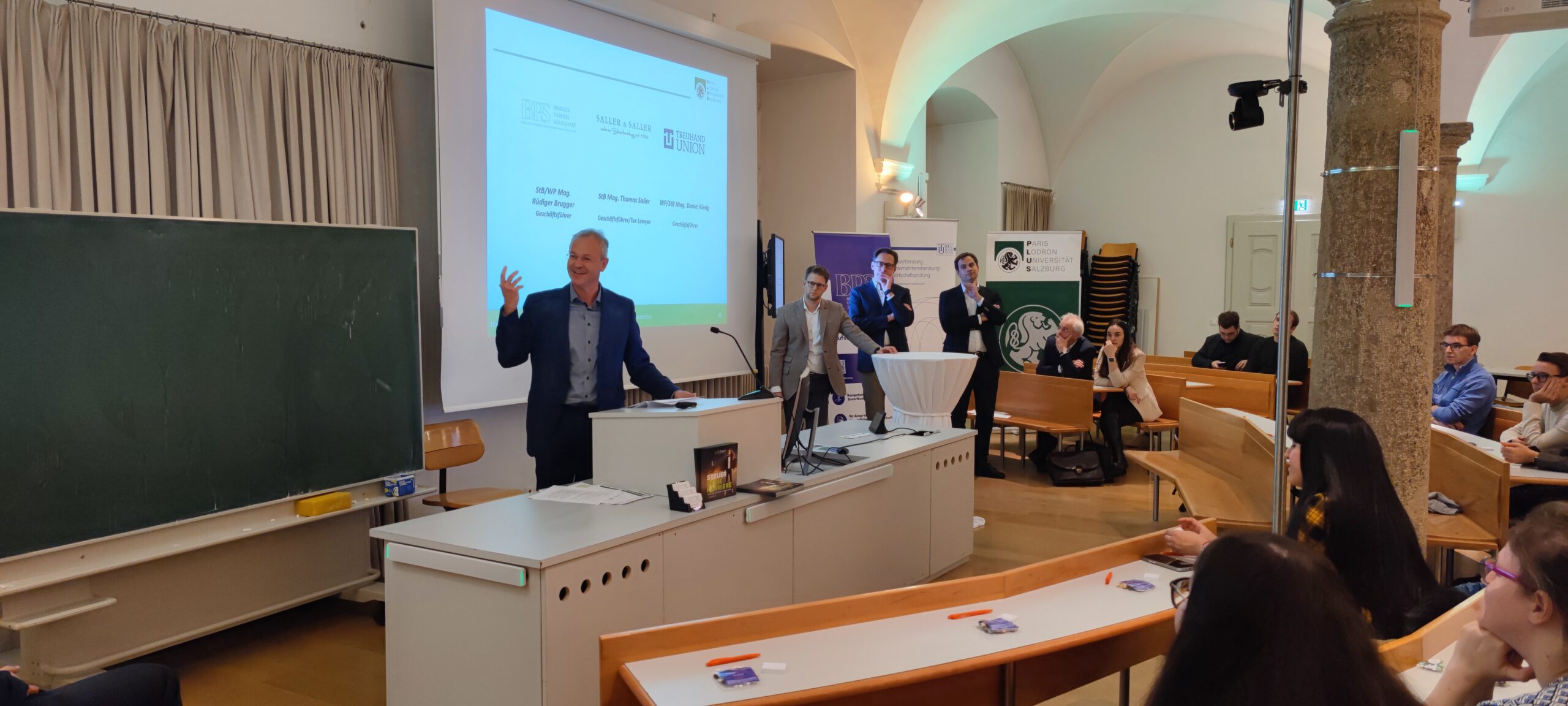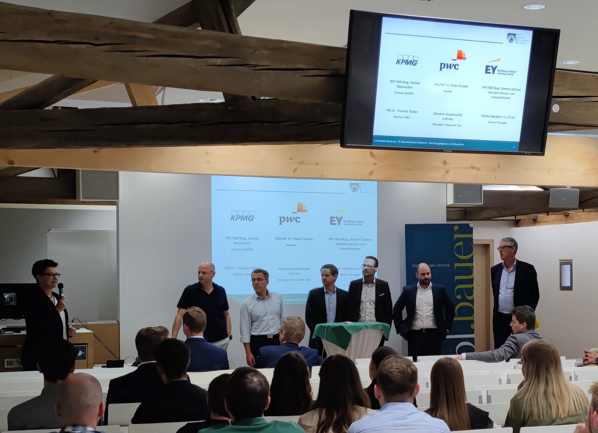 Wir bedanken uns ganz herzlich bei den VertreterInnen der diversen Kanzleien für die umfassenden Einblicke in das Berufsbild des Steuerberaters/der Steuerberaterin bzw des Wirtschaftsprüfers/der Wirtschaftsprüferin und freuen uns über das rege Interesse der Studierenden an dieser Veranstaltung.