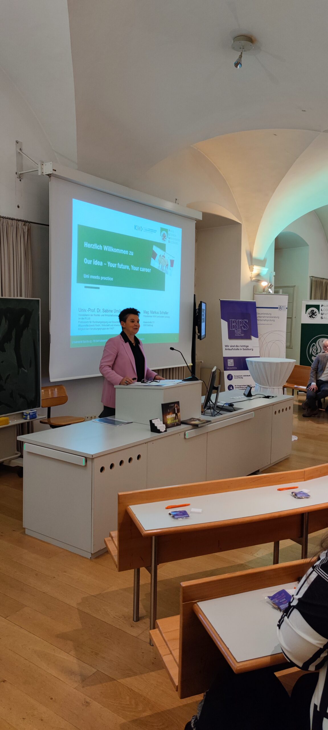 Am 24.11.2025 fand erneut eine Veranstaltung aus der Reihe „Uni meets Practice“ statt. Die Intention dieser Veranstaltungsreihe ist, Studierenden einen Einblick in das Berufsfeld des Steuerberaters/der Steuerberaterin sowie des Wirtschaftsprüfers/der Wirtschaftsprüferin zu geben und damit den Konnex von Studium und Praxis aufzuzeigen.