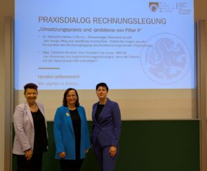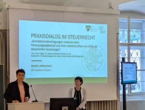Nach den Begrüßungsworten von Univ.-Prof. Dr. Sabine Urnik referierte Univ.-Prof. Mag. Dr. Sabine Kanduth-Kristen LL.M. (Alpen-Adria-Universität Klagenfurt, Institut für Finanzmanagement) zu diesem Thema.