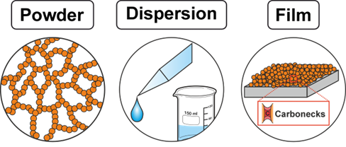 Scheme illustrating the formation of carboneck centers in nanoparticle-based mesoporous films.