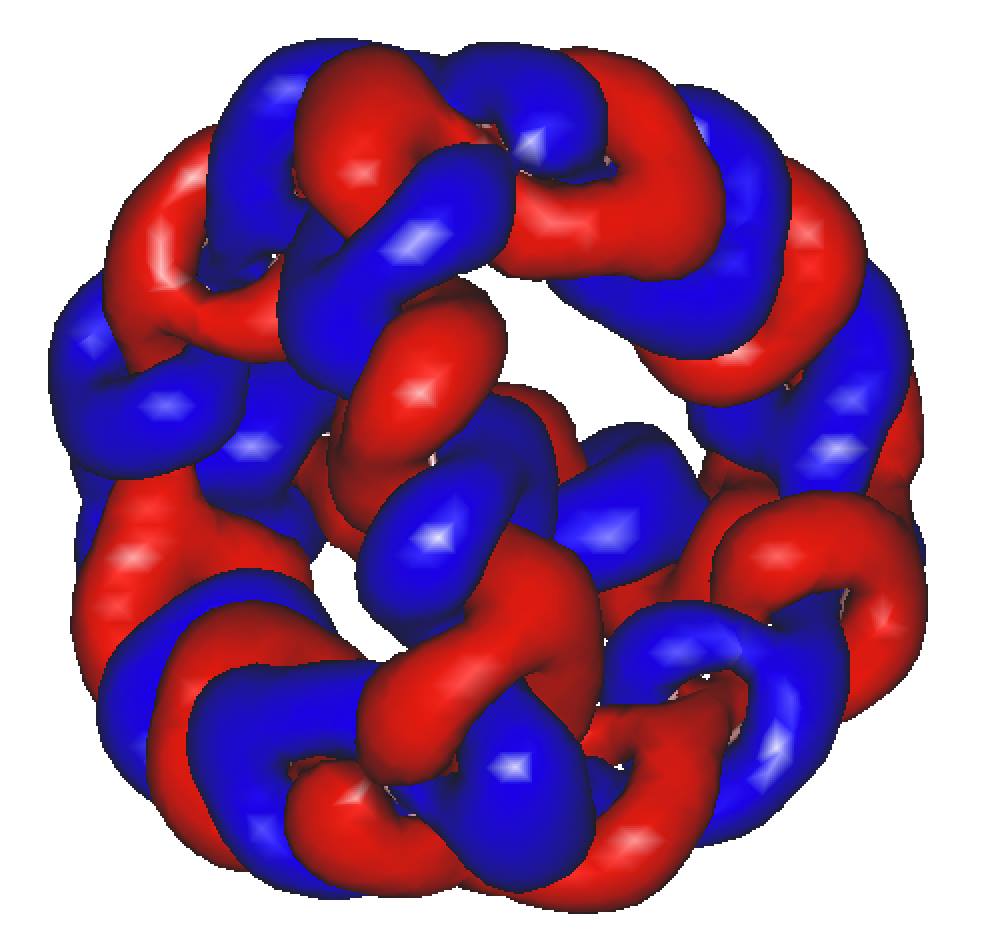 Amazing KS orbital from a boron cluster type compound. Lobes appear to be knotted like in knitwear.
