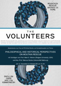 home – Reflections on The Volunteers”. Mark Weiner is an American Professor Emeritus of Constitutional Law at Rutgers University and holds a J.D. from Yale Law School and a Ph.D. in American Studies from Yale University. His latest project focuses on the remarkable connection between two mountain rescue organizations – one near Seattle, Washington and the other in Tyrol, Austria. “The Volunteers” will be screened at DAS KINO on November 13, 2024 at 7:00 pm as the opening film of the Salzburg Mountain Film Festival 2024 and showcases the spirit and heroism of these extraordinary communities. Afterwards, Ass.-Prof. Marcus Hanke from the Department of Legal Theory, International and European Law then addressed the role of volunteering in Austrian civil protection and the importance of volunteering for social solidarity.