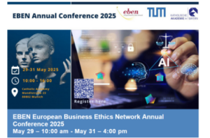 From 29 to 31 May 2025, Dr. Silvia Traunwieser took part in the Annual Conference of the European Business Ethics Network (EBEN) in Munich. The conference was held under the motto “Artificial Intelligence, Business Ethics and Corporate Responsibility: Challenges and Opportunities for Business and Society” – EBEN is a Europe-wide network for the promotion of business ethics with members in over 40 countries.