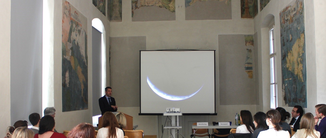 On 11 April 2018, the Space Conference took place from 11:00 a.m. in the Map Gallery of the University of Salzburg. Under the title ‘21st Century Challenges in Space’, four experts from politics, practice and science presented selected chapters of space law, with Professor Dr Kirsten Schmalenbach opening the conference on behalf of the Institute of International Law. In her welcoming address, she paid particular attention to the historical maps from the 16th century, which, as a symbol of the human urge to explore and discover, provided an extremely fitting backdrop for the Space Conference.