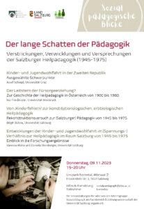 Die Vortragsreihe „Sozialpädagogische Blicke“ findet in diesem Herbst-/Wintersemester 2025/26 als Fachtag am 12.11.2025, von 14-19 Uhr statt. Unter dem Titel „Aus.Bildung.Sozialpädagogik?!“ möchten wir uns den aktuellen Entwicklungen im Kontext der Professionalisierung widmen. Dazu haben wir Vertreter:innen aus Wissenschaft, Praxis und Berufsvertretung eingeladen mit ihren Beiträgen den Fachtag zu gestalten. Gudrun Ehlert (Hochschule Mittweida) thematisiert Genderaspekte der Professionalisierung, Kurt Schalek (AK Wien) stellt aktuelle Studienergebnisse zur Arbeitssituation von Fachkräften vor und Julia Pollak (obds) berichtet über aktuelle Entwicklungen hinsichtlich eines Berufsgesetzes. Abschließend möchten wir gemeinsam in einem Roundtable mit Eberhard Raithelhuber (Bertha von Suttner Privatuniversität) und Markus Manzinger (Dachverband der Österreichischen Kinder- und Jugendhilfeeinrichtungen) aktuelle Herausforderungen und mögliche Zukunftsperspektiven diskutieren.