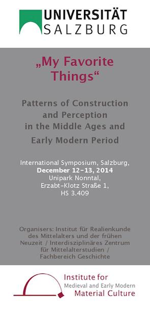 Unter dem Titel ‚My favorite things‘. Patterns of Construction and Perception in the Middle Ages and Early Modern Period veranstalten das IMAREAL, das IZMS und der Fachbereich Geschichte vom 12. bis 13. Dezember 2014 ein internationales Symposium.