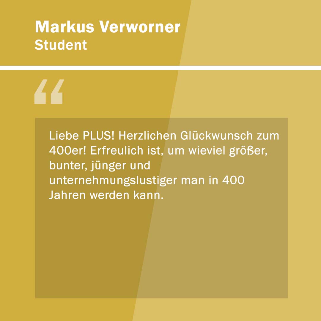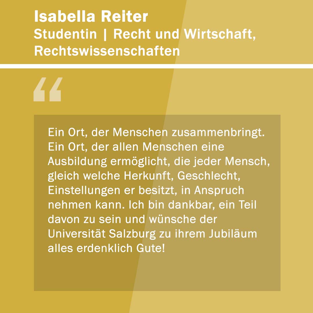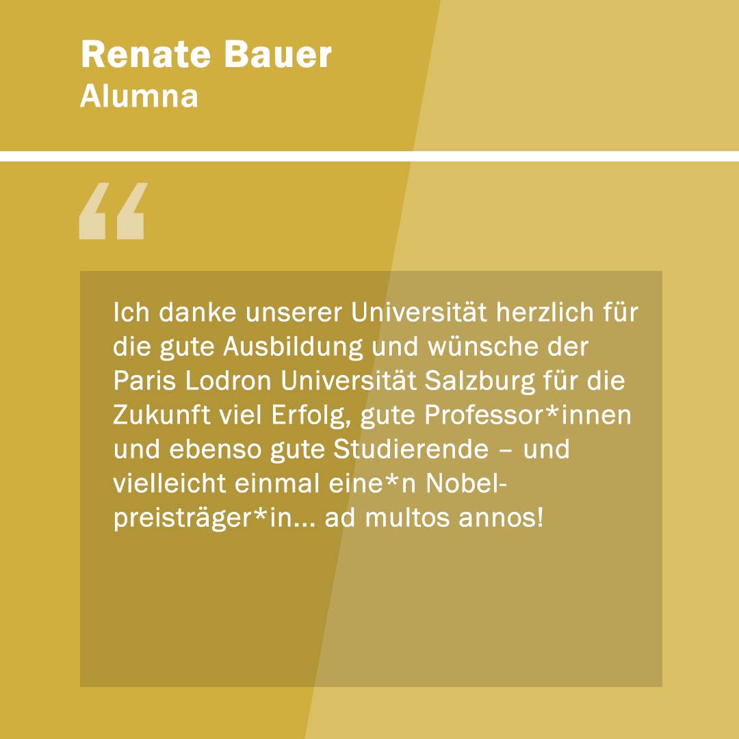 Anlässlich ihres 400. Gründungstages freute sich die Paris Lodron Universität Salzburg über alle Wortspenden zu ihrem Jubiläum! „400 Stimmen zu 400 Jahren“ war eine Initiative, um diese Grußworte und Gratulationen sichtbar zu machen. Wir starteten in Jänner 2022 mit 37 Grußbotschaften – bunt gemischt von Studierenden, bekannten Persönlichkeiten unter anderem aus Kultur, Politik und Wirtschaft, von Alumni sowie Mitarbeiter*innen der PLUS. Die Nachrichten waren so divers wie ihre Absender*innen. Jede Grußbotschaft steht für eine Stimme oder auch für die vielen Stimmen einer Einrichtung.