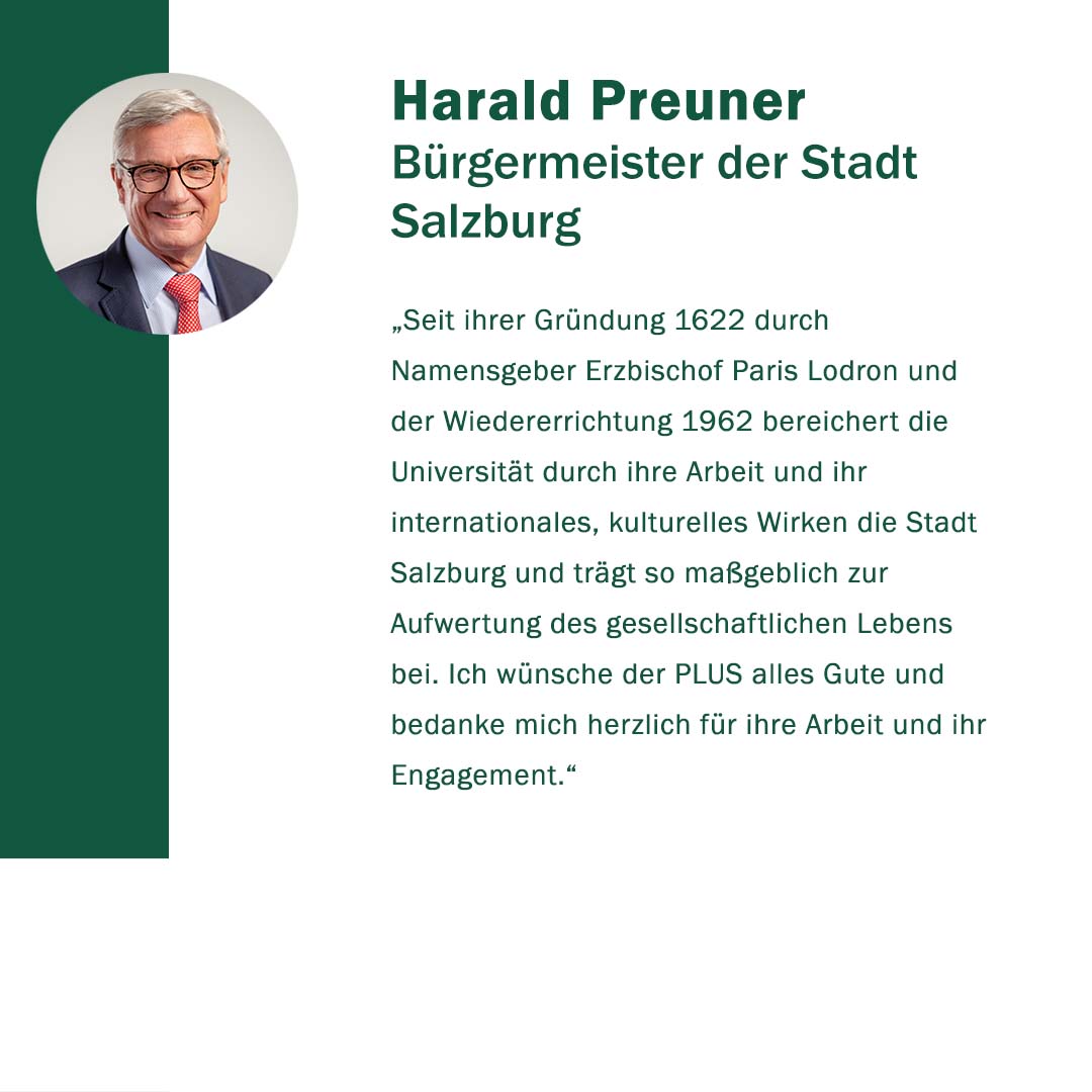 - Hier finden Sie vollständige Grußbotschaft von Harald Preuner, Bürgermeister der Stadt Salzburg.