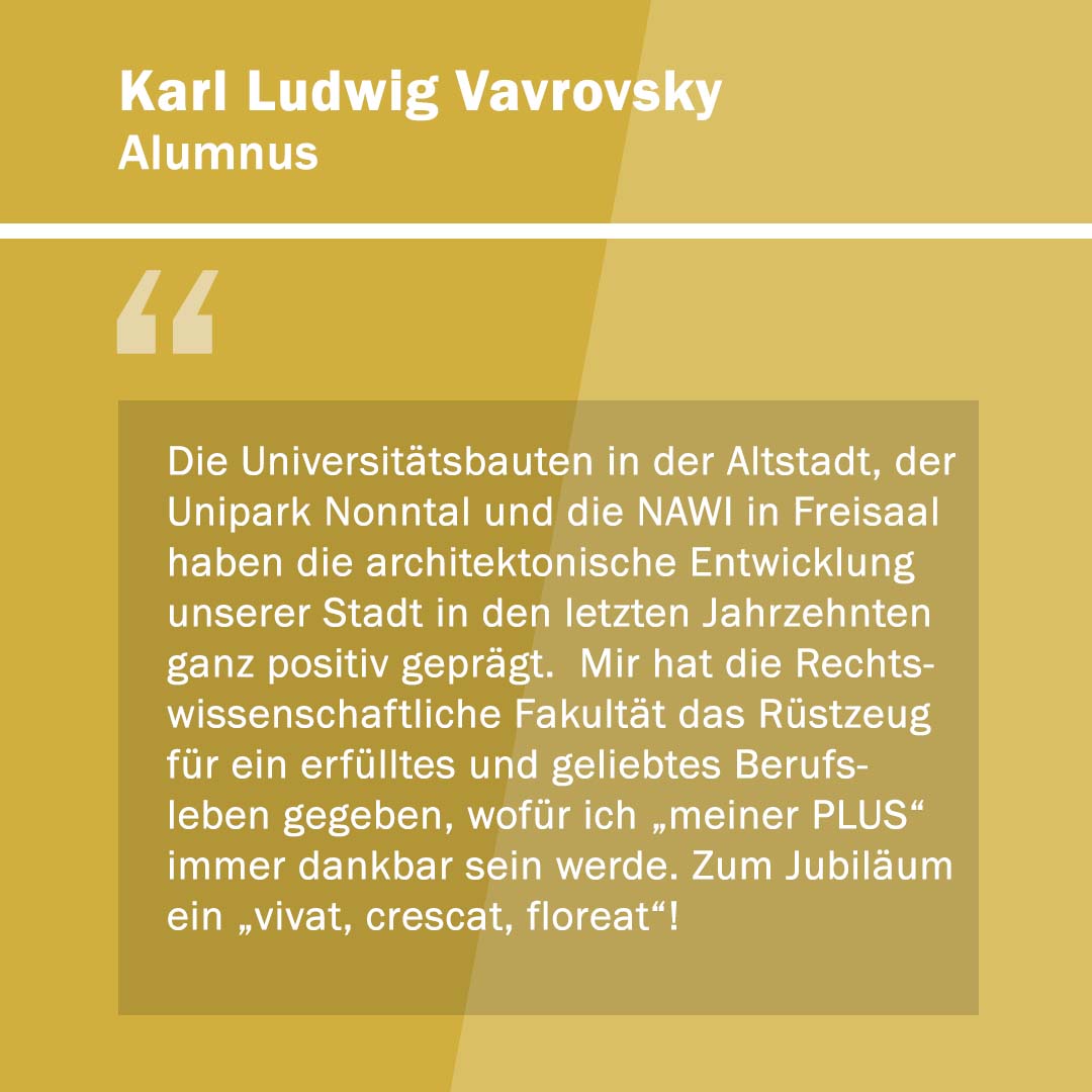 - Hier finden Sie die vollständige Grußbotschaft von Karl Ludwig Vavrovsky, Alumnus.