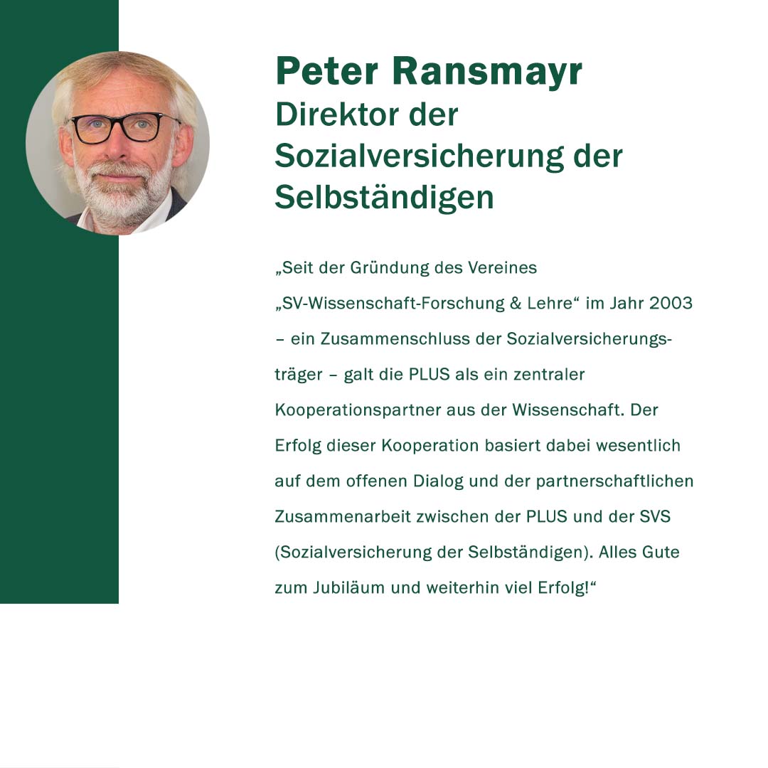 - Hier finden Sie die vollständige Grußbotschaft von Peter Ransmayr, Direktor der Sozialversicherung der Selbstständigen.