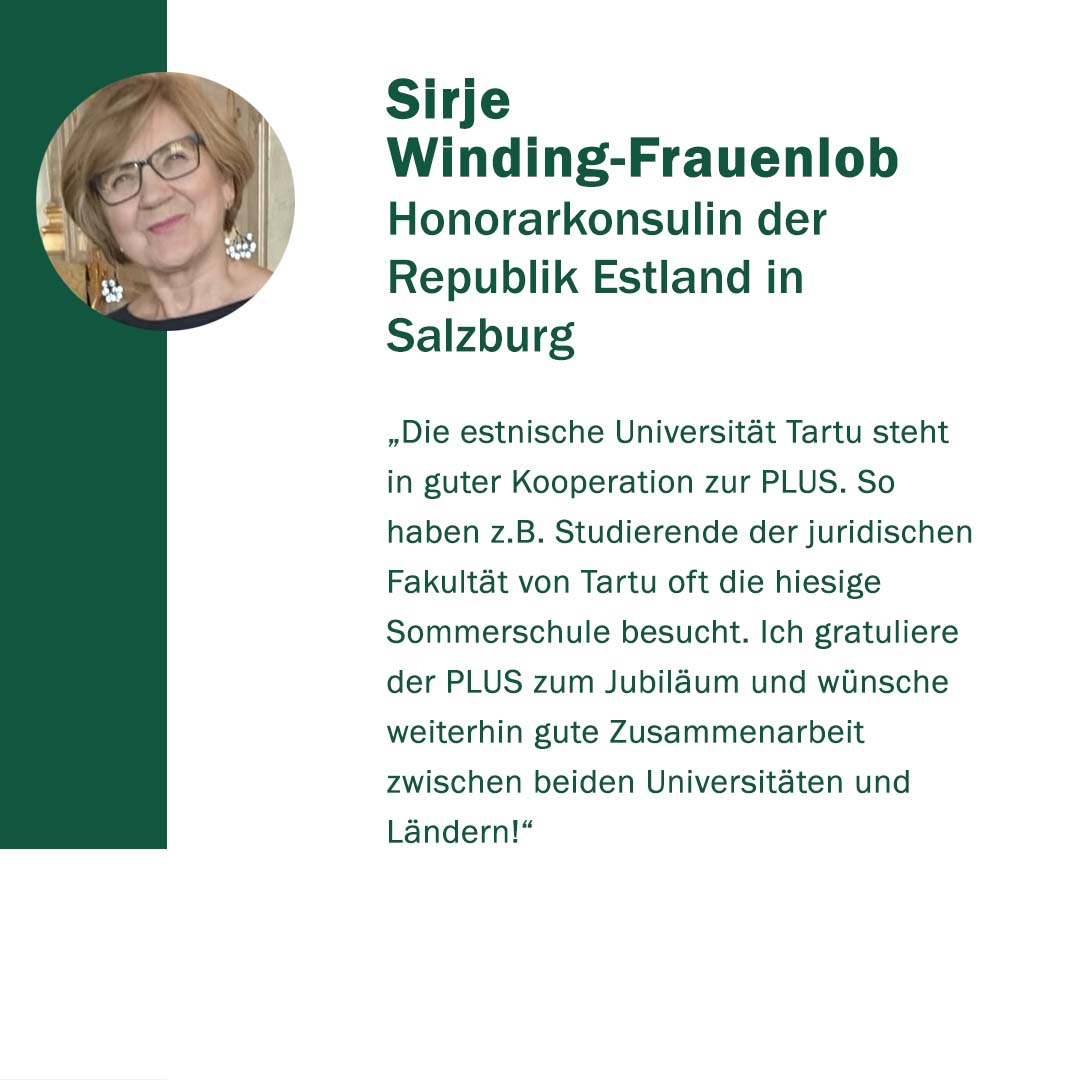 - Hier finden Sie die vollständige Grußbotschaft von Sirje Winding-Frauenlob, Honorarkonsulin der Republik Estland in Salzburg.