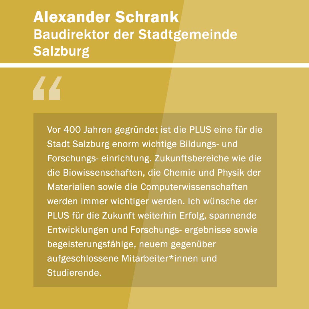 - Hier finden Sie die lange Grußbotschaft von Alexander Schrank, Baudirektor der Stadtgemeinde Salzburg.