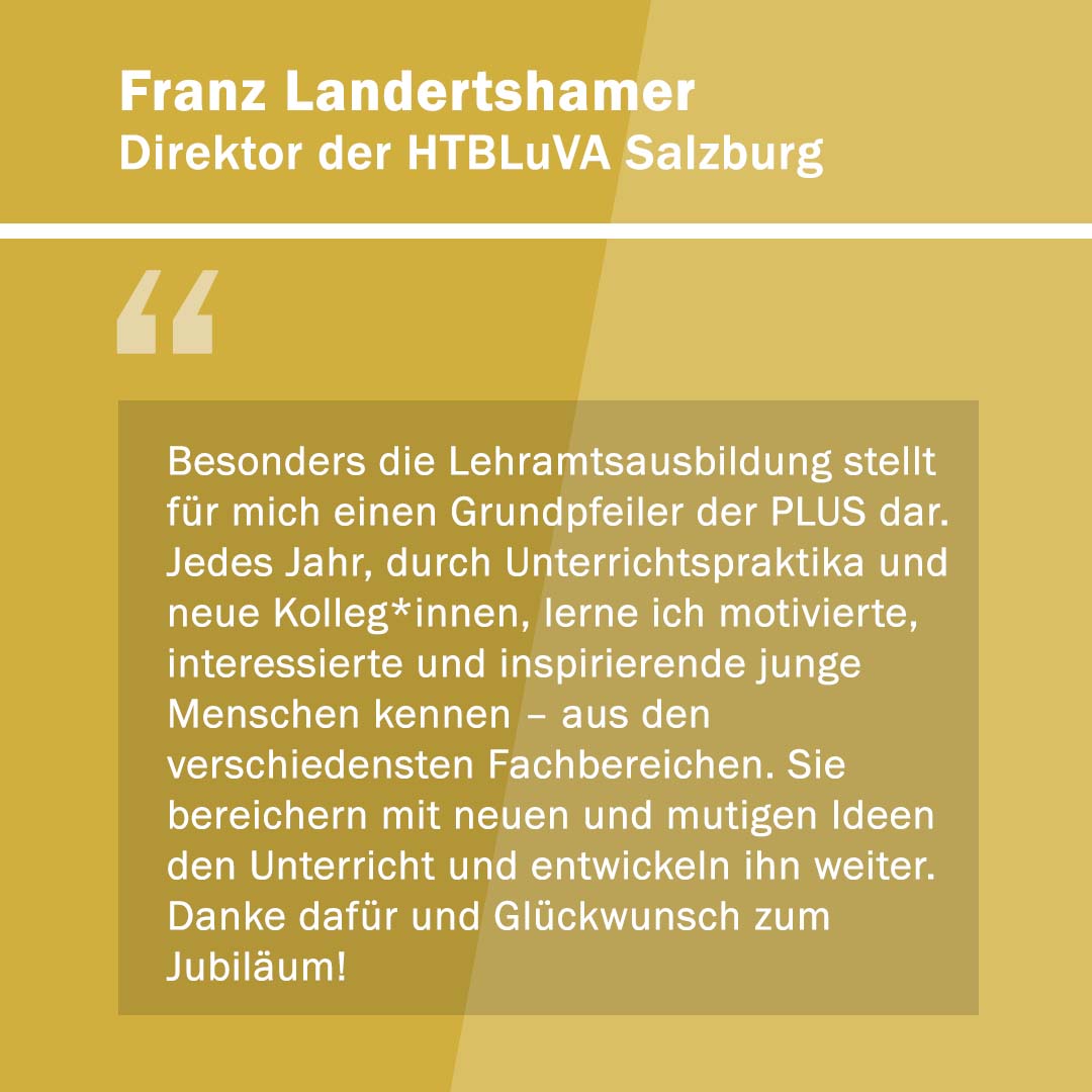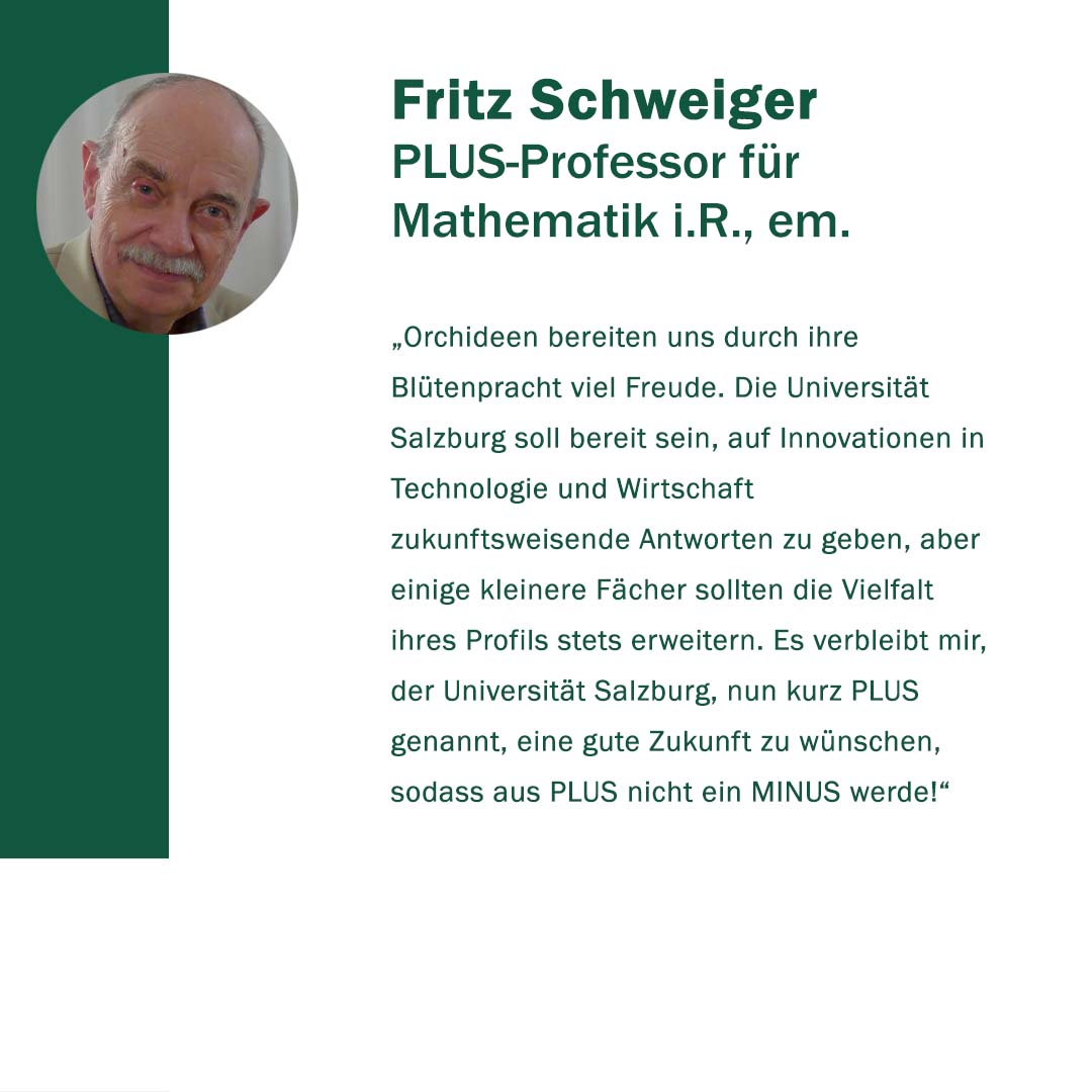 - Hier finden Sie die lange Grußbotschaft von Fritz Schweiger, ehemaliger PLUS-Professor für Mathematik.