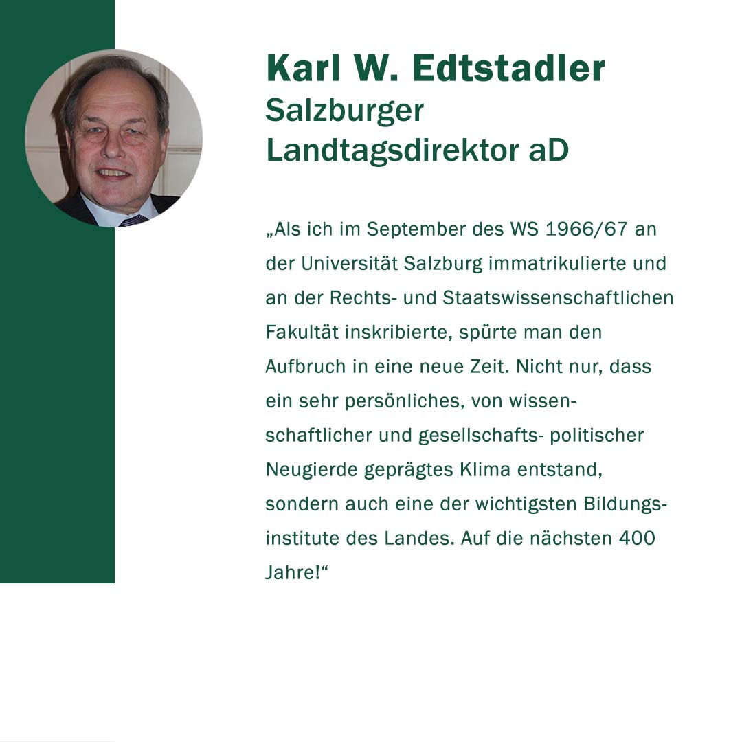 - Hier finden Sie die lange Grußbotschaft von Karl W. Edtstadler, Salzburger Landesdirektor aD.