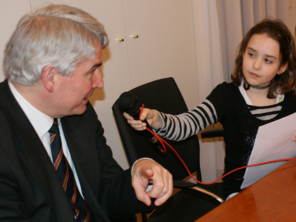 Rektor Schmidinger im Interview mit einer Kinderradio-Reporterin