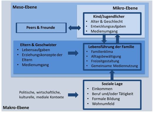 Theoretisch basiert die Studie auf einem praxeologischen, integrativen Ansatz. Danach ist die Sozialisation eines Menschen als ein lebenslanger Prozess zu verstehen, der sich in verschiedenen sozialen Zusammenhängen vollzieht, an denen das Individuum beteiligt ist. Im Mittelpunkt der praxeologischen Perspektive steht die Frage nach dem sozialen Milieu und den Habitus-Ausprägungen von Individuen, in diesem Fall jenen von Kindern und Eltern in ihrer Familie. Zentral ist, wie sie im Kontext ihrer je spezifischen Lebensbedingungen auch mit Hilfe von Medienangeboten einzelnen Vorgängen in ihrer Umgebung Sinn zu geben suchen, um ihre persönliche und soziale Identität so gut wie möglich zu sichern bzw. auszubauen, ihr Kohärenz zu geben und den Alltag lebbar zu gestalten. Ins Visier gefasst wird dazu die je individuelle, aber dennoch über die subjektive Repräsentation hinaus weisende Lebensumfeld und die jeweilige darin eingelagerte Lebensführung. Der Blick gilt den Heranwachsenden in ihrem Alltag, wie sie in ihren sozialen Räumen, die ihnen tatsächlich oder symbolisch zur Verfügung stehen und in denen sie ihre ‚Kapitalien‘ einsetzen, Sinn im Alltag herzustellen versuchen und Handlungskompetenz erwerben.